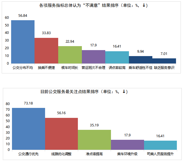 本次調(diào)查共收集有效問卷1471份,623條相關(guān)問題及建議。問卷涵蓋公交線網(wǎng)優(yōu)化、文明服務(wù)、換乘便捷度、候車時間、乘車舒適度、智能信息建設(shè)等多方面內(nèi)容。調(diào)查顯示,參與投票人群年齡結(jié)構(gòu)主要集中在18~59歲,其中以40~59歲為主體。(一)公交服務(wù)滿意度指標(biāo)及數(shù)值根據(jù)交通運(yùn)輸部GB/T 36953.2-2018城市公共交通乘客滿意度評價方法,公共交通乘客滿意度指乘客對公共交通服務(wù)質(zhì)量的滿意程度,評價程度設(shè)置為“很滿意”、“滿意”、“一般”與“不滿意”。問卷顯示荊門公交服務(wù)整體滿意度為91.96%。問卷顯示公交線網(wǎng)分布不均、線路不合理、換乘不便捷為主要服務(wù)訴求,公交線路分布不均為“不滿意度”投票最高問題;主干道公交優(yōu)先通行權(quán)為服務(wù)訴求投票最高關(guān)注點。 此次問卷調(diào)查,感謝廣大市民乘客的積極參與,市公交集團(tuán)將結(jié)合實際,認(rèn)真聽取、采納乘客提出的意見及建議,予以改進(jìn): 關(guān)于線路運(yùn)營方面,對5路線(圣境山—海慧)、88路線(東寶碧桂園—楊家橋)、58路線(碧桂園北—漳河新區(qū)政務(wù)中心)、59路線(荊楚理工學(xué)院—掇刀區(qū)政務(wù)中心)早中晚客流高峰期加密營運(yùn)班次和增設(shè)區(qū)間班次,對33路線(楚天學(xué)?!d化三路東)、69路線(雙喜小學(xué)—園博園東門)、13路線(牌樓—園博園西門)進(jìn)行線路優(yōu)化,方便沿線居民出行需求;近期擬開通碧桂園翡翠公館至長崗萬人社區(qū)、東寶政務(wù)中心至市政務(wù)中心公交線路,具體方案正逐步規(guī)劃中。